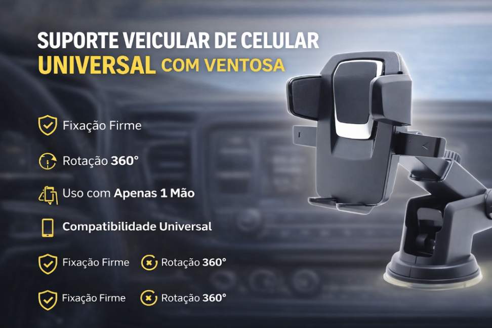 Seja bem-vindo ao seu novo companheiro de viagem, o Suporte Veicular Celular com Ventosa que Gruda no Painel Automaticamente! Chegou a solução ideal para facilitar o uso do seu celular ou GPS enquanto dirige, garantindo praticidade, segurança e conforto durante seus trajetos. Com design inovador e funcionalidades inteligentes, este suporte é indispensável para quem busca otimizar sua rotina no trânsito.